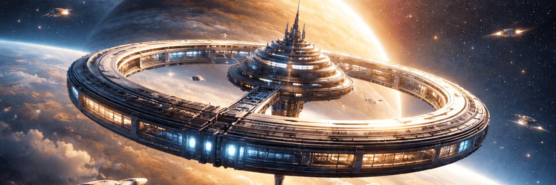 Drift beyond the boundaries of Earth and arrive at Aurelia Orbit, humanity’s most breathtaking celestial destination. Suspended in a slow, graceful rotation around the golden planet Aurelia, this state-of-the-art ring station offers panoramic views of shimmering cloud bands, radiant sunrises cresting the planetary horizon, and the silent ballet of passing spacecraft.